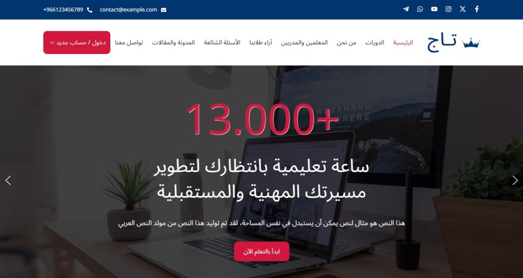 تاج – قالب ووردبريس احترافي للمواقع التعليمية والدورات والاختبارات